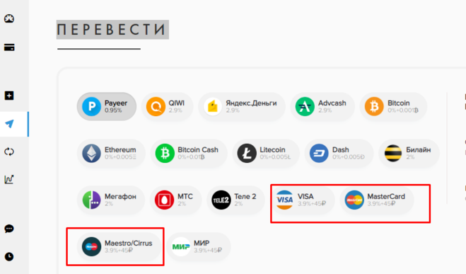 Вывод осуществляется мгновенно по всем направлениям. Благодаря обменнику вопрос «как снять деньги с кошелька Payeer?», решится за считанные секунды. Вы можете выводить средства на карты разных банков, приобретать криптовалюту, Яндекс.Деньги или пополнять Киви-кошелек. Сервис многофункционален и решает несколько задач одновременно – сохраняет анонимность и минимизирует расходы на комиссию.