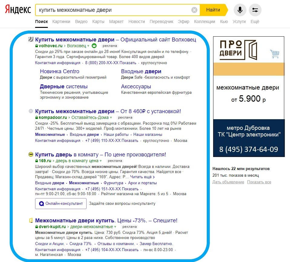 - Поисковая контекстная реклама – один из видов контекстной рекламы, это та, которая показывается в поиске на ответы пользователей. Поисковая реклама показывается в результатах поиска над поисковой выдачей и в блоке справа над поисковой позицией.