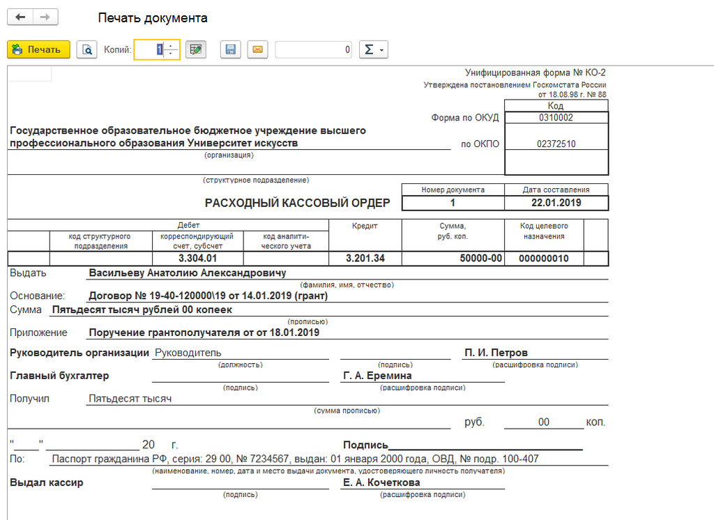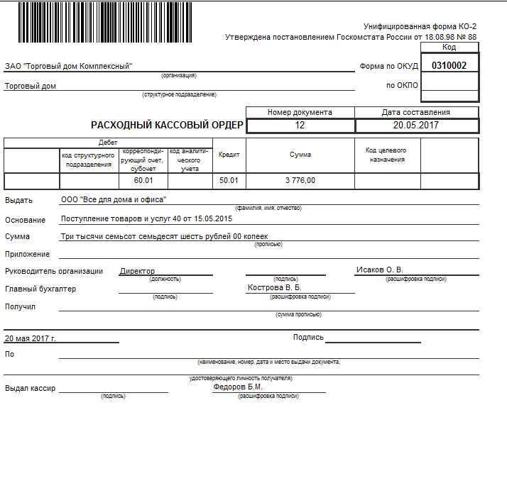 РКО вход